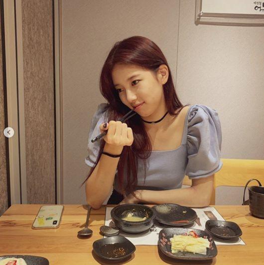 사진 속 수지는 붉은 톤의 헤어스타일로 눈길을 끈다. 식사를 하는 도중에 찍은 것으로 보이는 사진에서도 수지는 빛나는 미모를 자랑한다. 어떤 헤어스타일을 해도 예쁘다는 반응이 줄을 잇고 있는 바.