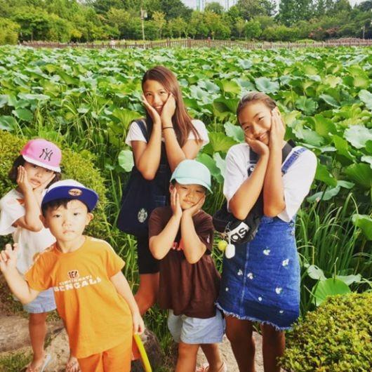 공개된 사진 속에는 이동국, 이수진 부부의 다섯 자녀가 연꽃을 배경으로 인증샷을 찍고 있다. 다섯명 모두 폭풍성장한 모습으로 눈길을 사로잡는다.