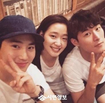 공개된 사진 속 수호는 김고은과 배우 이현욱과 함께 다정한 포즈를 취하고 있다.