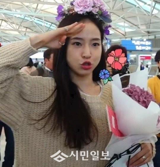 사진 속 홍자는 '미스트롯' 미국 공연을 위해 출국하는 모습이 담겼다. 홍자는 입술을 쭉 내민 채 거수 경례 포즈를 취하고 있어 웃음을 자아냈다.