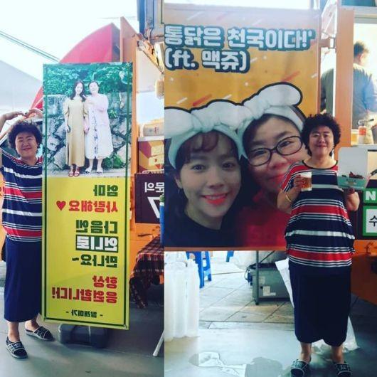 공개된 사진 속 이정은은 한지민이 보낸 간식차 앞에서 인증샷을 남기고 있다. 한 손에는 맥주를, 한 손에는 치킨을 받아든 이정은은 흐뭇한 미소를 짓는 중이다.