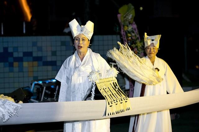 | ▲ 향토문화유산 지정 오구굿을 재현하고 있는 서초희씨 / 해남군 제공 |