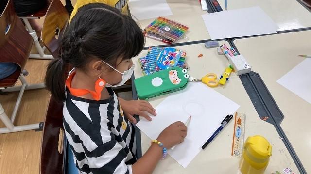 | ▲ 한국저작권위원회에서 실시한 '찾아가는 저작권 교육'에 참여한 해남동초 학생이 상상의 동물을 그리고 있다. / 사진=해남동초등학교 제공 |