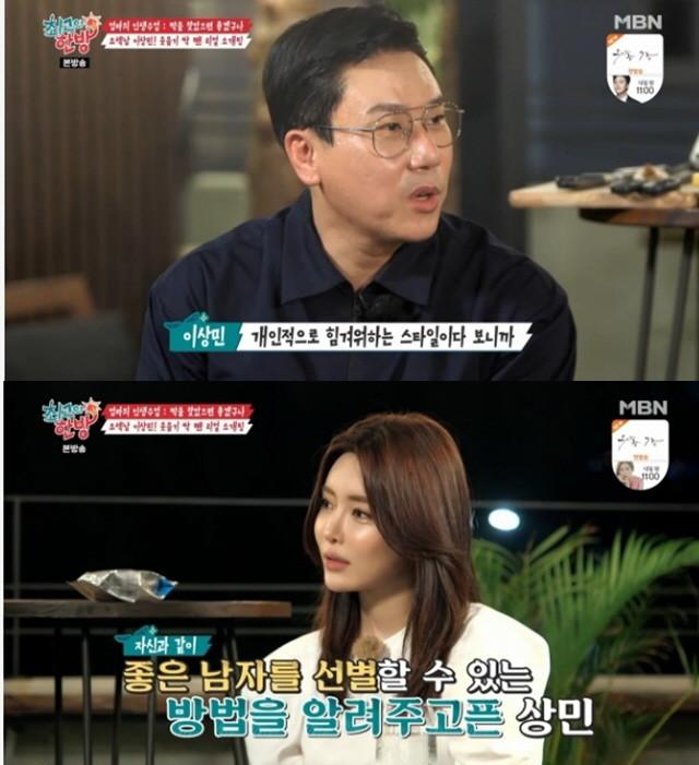 이날 이상민은 31살의 부산 출신 미모의 아나운서 김슬아와 소개팅을 했다. 이상민은 김슬아게 “저인줄 알고 부산에서 오신 것 아니냐. 오기 전에 망설이지 않았냐”고 물었다. 김슬아는 “솔직히 고민을 많이 했다. 나이차도 많이 나고 TV에서 이미지가 좋으시지 않나. 굉장히 듬직하기도 하셔서”라며 “좋아하는 이상형이 돈 잘 갚는 남자”라고 돌직구를 던졌다.