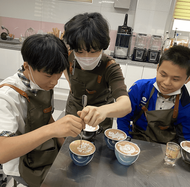 | ▲ 해남교육지원청 특수교육지원센터, 해남권역 특수교육대상학생(중·고)들을 위한 진로·직업 프로그램 운영 (사진은 바리스타 체험을 하고 있는 학생들 / 해남교육청 제공) |
