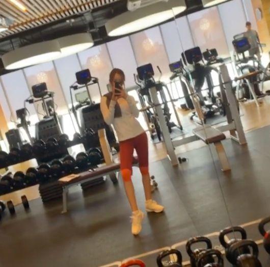 공개된 영상 속 효민은 헬스장 전면 거울 앞에서 운동 인증샷을 남기고 있다. 흰 티셔츠에 빨간 레깅스를 착용한 효민은 늘씬하고 탄탄한 보디라인을 자랑한다.