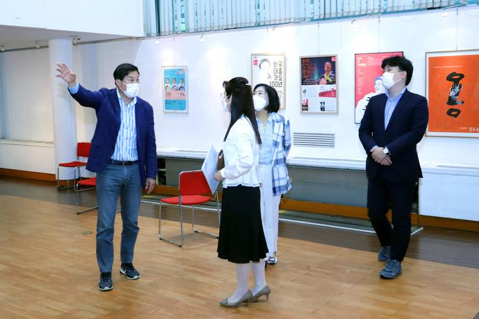| ▲ (왼쪽부터) 중구의회 복지건설위원회 길기영 위원장, 이화묵 위원, 이승용 위원이 중구문화원을 방문하여 내부 시설을 살펴보고 있다.(사진제공=중구의회) |