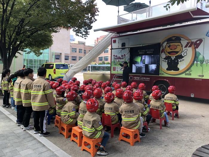 어린이들은 안전을 주제로 한 애니메이션을 시청하고 ▲지진 시 비상구 찾기 ▲경사구조대를 통한 탈출 ▲물소화기 활용 ▲화재 시 대피방법 등 다양한 체험을 했다.