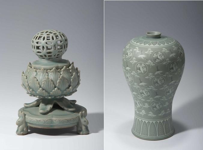 | ▲ 좌측부터 청자 향로, 청자 매병 / 강진군 제공 |
