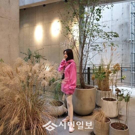 사진 속 류화영은 핑크색 후드티에 레깅스를 입은 수수한 모습으로 감탄을 자아냈다.