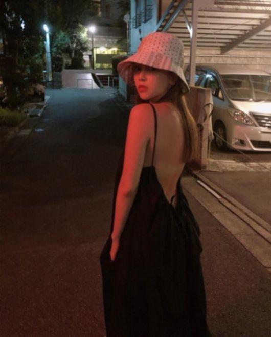 공개된 사진 속 아유미는 등이 훤히 파인 원피스를 입고 밤길거리에서 포즈를 취하고 있다. 여기에 버킷햇을 쓰고 센스 있는 서머룩을 연출했다.