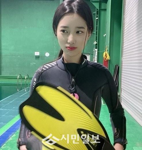 사진 속 조현은 검은색 잠수복을 입고 오리발을 든 채 카메라를 응시하고 있는 모습으로 감탄을 자아냈다.