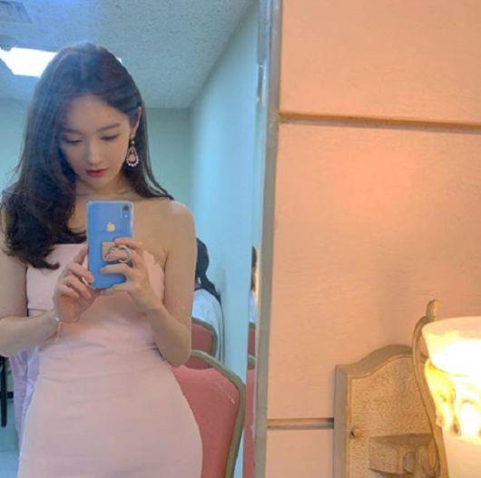 공개된 사진 속 강민경은 거울 셀카를 찍고 있는 모습이다. 강민경은 핑크색 드레스를 입고 잘록한 허리라인을 뽐내고 있어 눈길을 끈다.