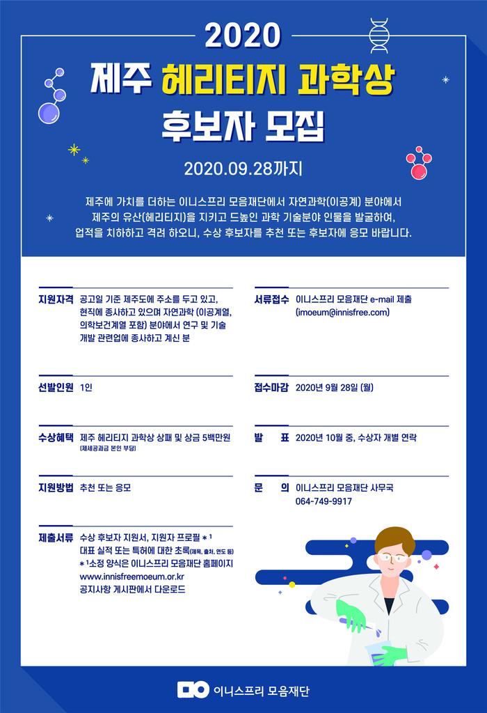 ▲ 2020 제주 헤리티지 과학상 후보자 모집 안내문. (사진제공=아모레퍼시픽) |