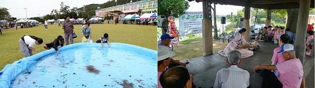 | 사진은 (좌측)지난해 열린 학산 유기농 토하축제 모습과 (우측)모정마을 연꽃축제 가야금 연주 모습 |