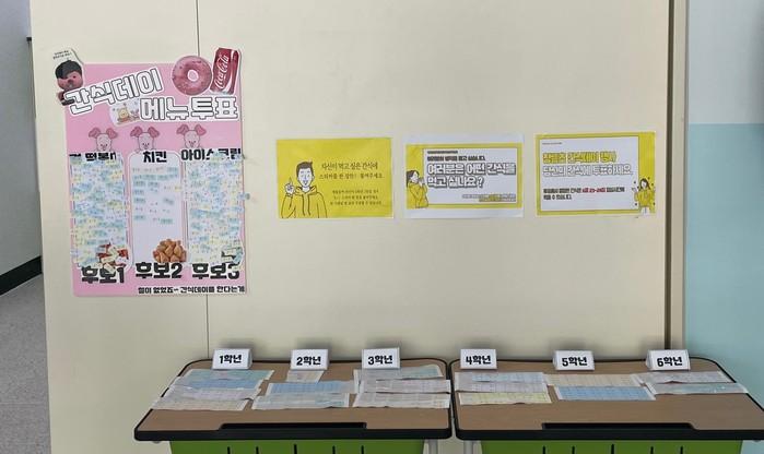 이를 위해 각 학급에서 원하는 간식 3가지에 대해 회의를 하고, 그 의견을 모아 최종 간식 메뉴 선정 투표에 반영했다.