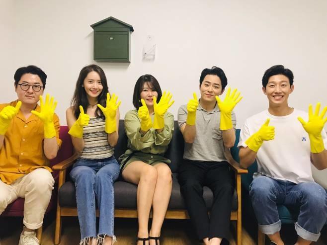 '엑시트'의 흥행 주역들인 조정석, 임윤아, 김지영, 강기영, 이상근 감독은 영화 속 슬기로운 재난탈출기 소품인 고무장갑을 활용해 재기 발랄한 600만 관객 인증샷과 영상을 남겼다.