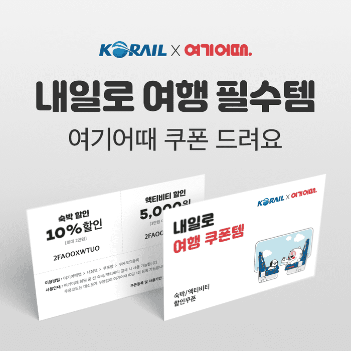이번 행사는 수원역, 서울역, 광명역, 영등포역 등 전국 20개 주요 역의 발권센터나 여행센터에서 여기어때 쿠폰을 만날 수 있다.