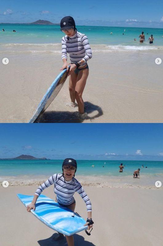무엇보다 운동으로 다져진 군살 없는 탄탄한 몸매가 인상적이다. 더할 나위 없이 사랑스러운 해변룩을 연출해 팬들을 열광하게 한다. 노을지는 석양과 함께 한 편의 화보 같은 일상을 자랑했다.