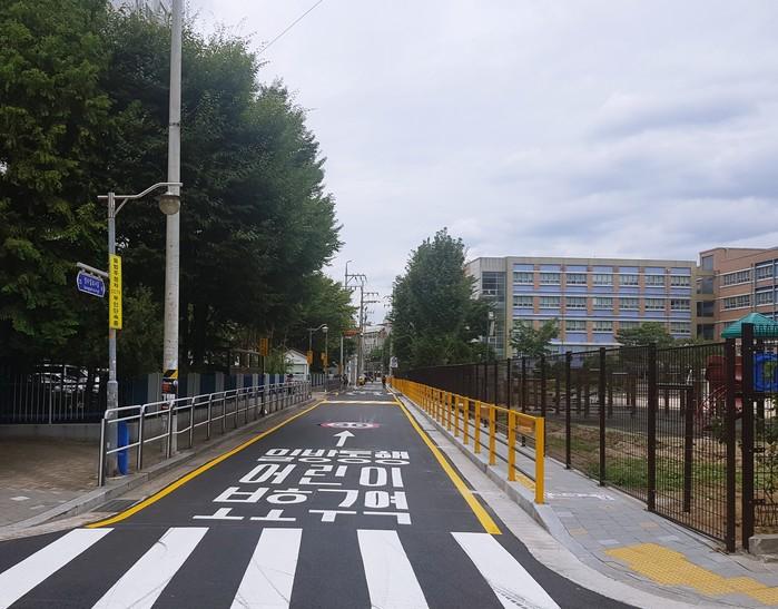 도드라진 바닥면으로 차량의 감속을 유도하고 인도와의 단차를 없앤 고원식 횡단보도와 방호울타리 등 다양한 교통안전시설물까지 설치된 통학로로 이제 해당 학교 학생들은 안전하게 통학할 수 있게 됐다.