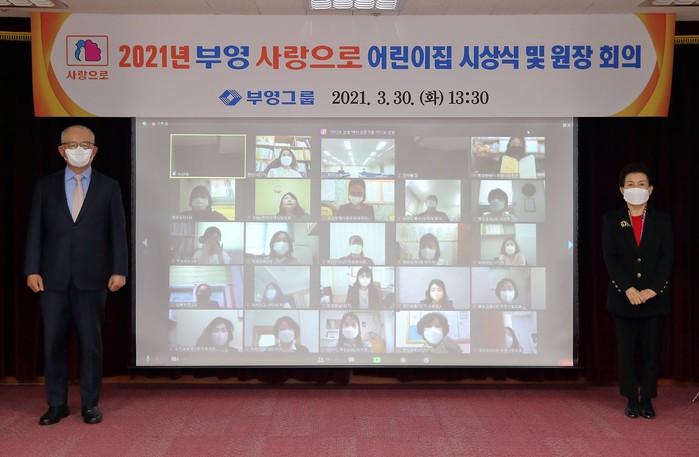 부영그룹은 지난 30일 온라인 비대면 방식으로 ‘2021년 어린이집 원장회의 및 시상식’을 열고 지난해 모범적으로 ‘안심 어린이집’을 실천한 ‘충북오창5단지 부영 사랑으로 어린이집(원장 정희욱)’을 대상으로 선정했다.