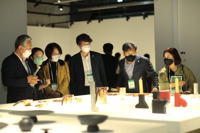 경기 화성시의회 교육복지위원회 소속 위원인 송선영·김경희·김도근·신미숙·이창현 의원이 최근 ‘2021 청주 공예비엔날레’ 현장을 방문, 비엔날레의 주요시설과 전시물들을 관람하고, 화성시 문화예술 콘텐츠 확충 방안에 대해 논의했다. 사진은 전시물을 관람하고 있는 의원들의 모습. (사진제공=화성시의회)