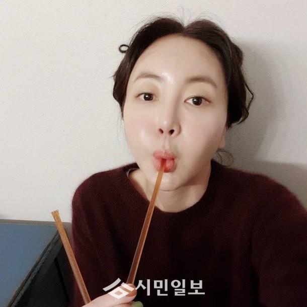 공개된 사진 속 황혜영은 꿀스틱을 입에 물고서 셀카를 찍는 모습으로 이목을 사로잡았다.