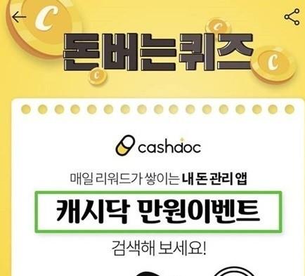 한편 '캐시닥 만원이벤트' 퀴즈의 정답은 '소비내역'이다.