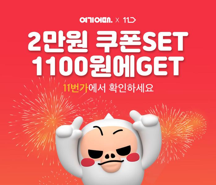 할인쿠폰은 5000원과 1만5000원 할인으로 구성된 '2만원 쿠폰 세트'며, 가격은 1100원이다.