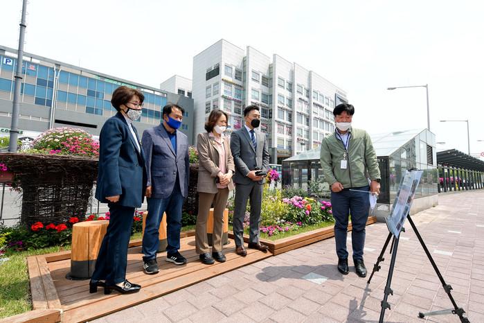 경기 김포시의회 도시환경위원회는 26일 김포시에서 추진 중인 꽃피는 거리 조성사업 현장을 확인했다. 사진은 사업현장을 찾은 의원들이 관계자로부터 현황을 청취하는 모습. (사진제공=김포시의회)