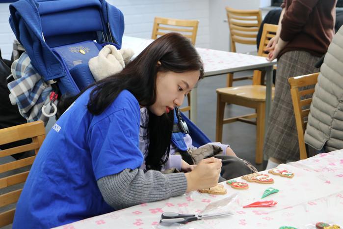 이날 봉사단 1조는 곧 다가올 연말을 맞이해 계획된 요리 프로그램에 함께 참여해 뇌성마비 장애아동 및 청소년들을 도왔다.