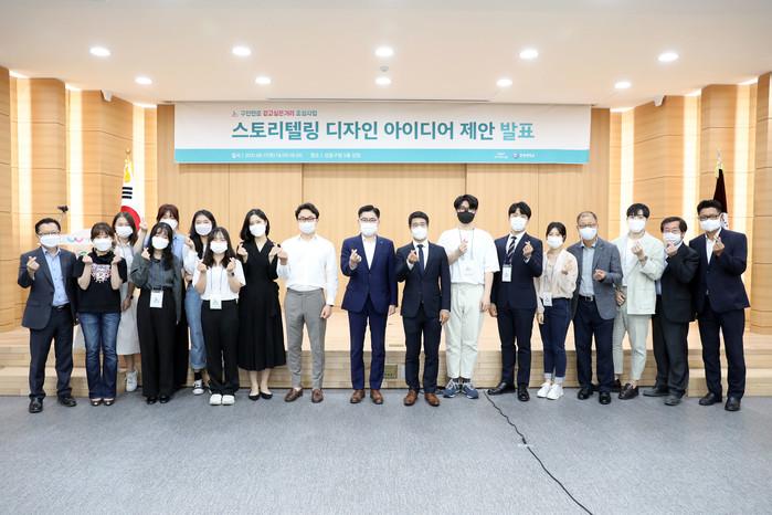 이정훈 서울 강동구청장이 최근 '한양대 응용미술학과 구천면로 걷고싶은 거리 활성화 프로젝트' 발표회에 참석했다. 발표회는 한양대 응용미술학과 학부생들이 구천면로 누구나 머물고 싶은거리(구천살롱) 등의 주제를 놓고 4개조가 프로젝트를 발표했다. 사진은 발표회에서 이 구청장(가운데)이 발표회 참가자들과 기념촬영을 하는 모습. (사진제공=강동구청)