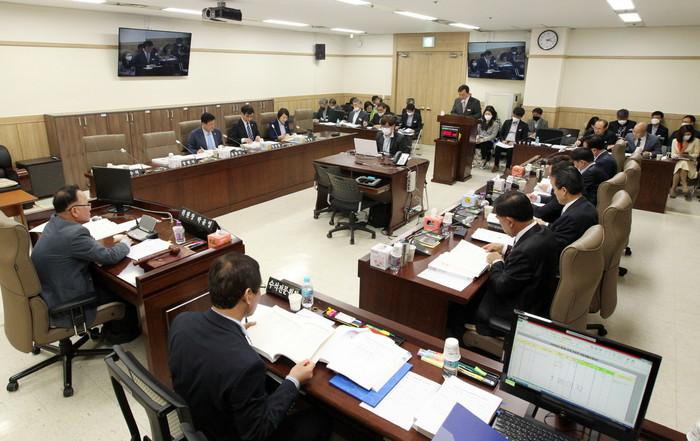 경기도의회 농정해양위원회는 최근 상임위원회를 개최하고 2020년 '제1회 경기도 추가경정 예산안'을 심사·의결했다. 사진은 올 1차 추경안을 검토하는 농정해양위 소속 의원들의 모습. (사진제공=경기도의회)