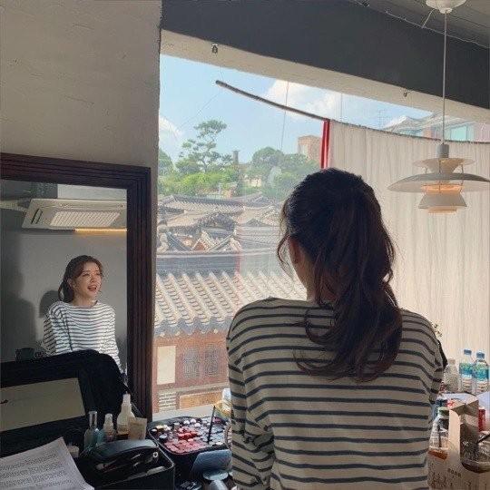 공개된 사진 속 정인선은 창밖 화창한 여름날씨를 감상하고 있다. 거울에 비친 정인선의 청량감 넘치는 모습이 보는 이의 시선을 사로잡았다.