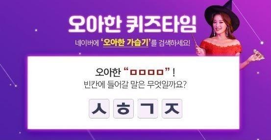 26일 퀴즈타임 측에서는 "오아한 ㅅㅎㄱㅈ!"이라는 문제를 출제했다. 초성 구간을 알맞은 단어로 채우면 되는 방식의 문제다.