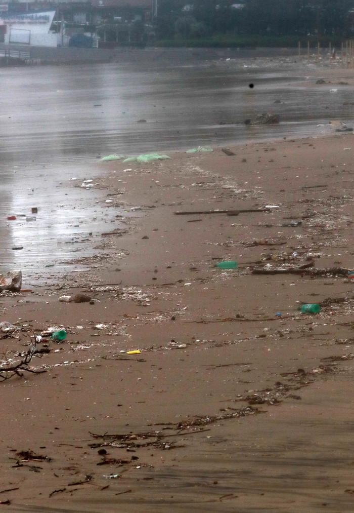 하이선이 동해안을 강타한 7일 오전 부산 광안리해수욕장이 쓰레기로 덮여 있다.