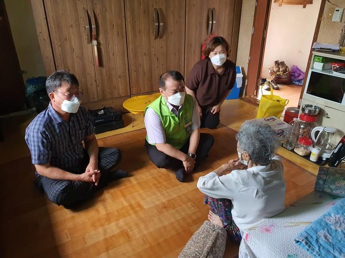 경기 여주시 대신면으로 지난 1일자로 발령받은 신임 박충선 면장은 업무를 시작하는 첫 발걸음으로 지역내 소외된 노인가정을 방문해 어려움을 직접 듣고, 소통했다. 사진은 이날 박 면장(가운데)이 지역내 노인가정을 방문해 대화를 하고 있는 모습. (사진제공=여주시청)