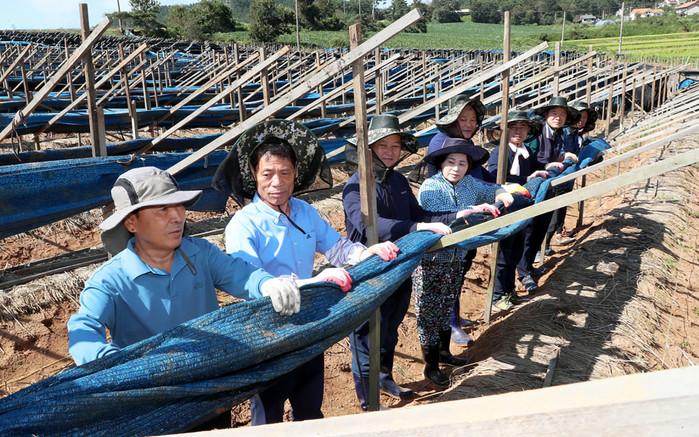 충남 태안군의회 의원들이 17일 제13호 태풍 '링링' 피해를 본 태안읍 한 인삼밭에서 강풍에 벗겨진 차양막을 걷어내고 있다.