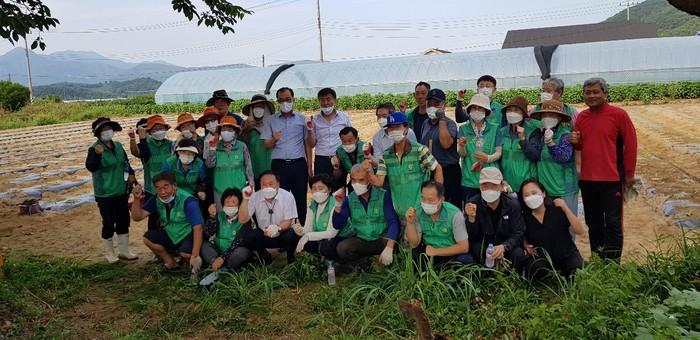 경기 양평군 개군면새마을협의회는 최근 앙덕리 일대에서 토종 무 1000개와 배추 파종행사를 실시했다. 무와 배추는 연말에 사랑의 김장담그기 행사를 통해 지역내 홀몸노인 및 저소득층에 기부될 예정이다. 사진은 이날 참여한 회원들이 기념촬영을 하고 있는 모습. (사진제공=양평군청)