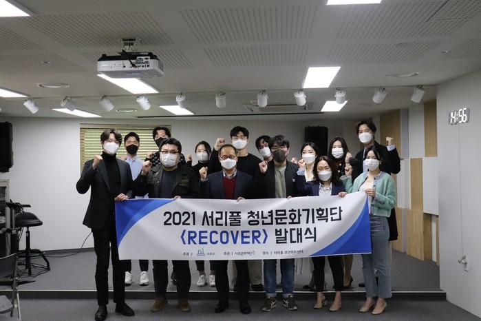 서울 서초구와 서초문화재단이 3년 간 맞춤형 프로듀싱 시스템으로 청년 예술인을 육성하고 자립까지 돕는다. 공개모집으로 선발된 서리풀문화기획단 청년 예술인 10명은 최근 서리풀청년아트센터에서 발대식을 개최하고 리커버(RECOVER)라는 활동명으로 본격적인 활동을 시작했다. 사진은 참여자들이 기념촬영을 하는 모습. (사진제공=서초구청)
