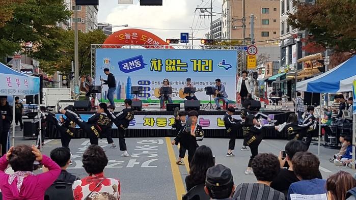 경기 수원시 권선구 곡선동은 지난 19일 수원축산농협 곡반정지점 거리 일원에서 생태교통수단 이용문화 확산을 위한 '2019년 제3회 곡선동 자동차 없는 날 행사'를 개최했다. 사진은 행사에 참여한 어린이들이 태권도 시범을 선보이는 모습. (사진제공=권선구청)