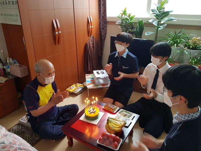 인천 서구 가좌3동 지역사회보장협의체는 최근 가좌중 사랑나눔 봉사단과 함께 ‘홀몸어르신 생신축하 활동’을 시작했다. 가좌3동 협의체는 가좌중 봉사단과 함께 오는 10월까지 총 12가정에 방문할 예정이다. 사진은 생일을 맞은 홀몸노인 가정을 방문해 쌀·케이크 등 준비한 선물과 함께 축하인사를 전하고 있는 모습. (사진제공=서구청)