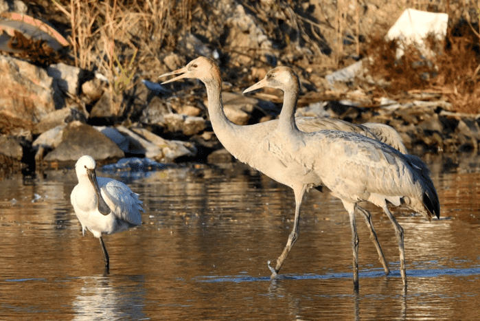 지난 12월 1일 검은목두루미 2개체가 신안 압해도 논 습지에서 확인되었다. 이번에 관찰된 검은목두루미는 신안에서 처음으로 확인된 사례이며, 월동지로 이동 중 휴식을 위해 잠시 중간기착한 것으로 판단된다.