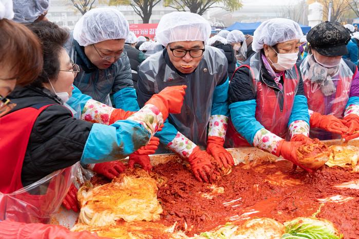 이용범 인천시의장은 최근 어려운 이웃의 따뜻한 겨울나기를 돕기 위해 열린 '계양구새마을협의회 김장담그기 행사'에 동참했다. 사진은 이날 행사에서 김장을 담그고 있는 이 의장의 모습. (사진제공=인천시의회)