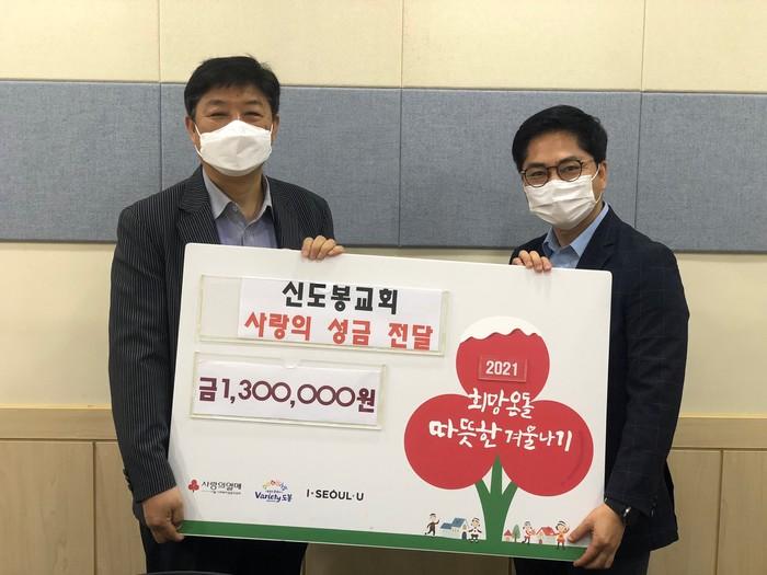 서울 도봉구 방학3동 주민센터는 최근 지역내 신도봉교회로부터 어려운 이웃을 위한 사랑의 성금 130만원을 전달받았다. 사진은 전달식에서 관계자들이 기념촬영을 하는 모습. (사진제공=도봉구청)