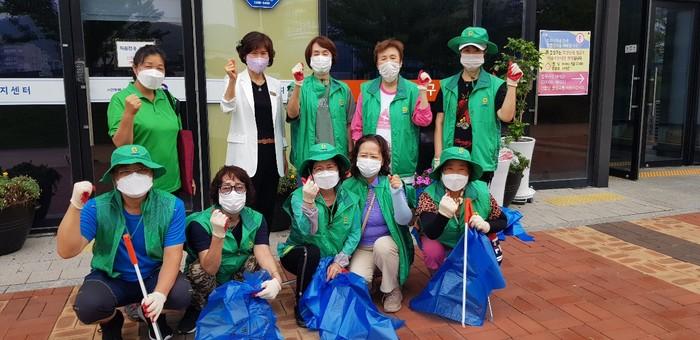 경기 김포시 마산동 새마을부녀회는 30일 마산동에서 가을맞이 환경정화 활동을 진행했다. 이번 환경정화활동은 솔터마을 2·3단지, 한강센트럴블루힐 아파트 인근에서 진행됐다. 사진은 참여자들이 기념촬영을 하는 모습. (사진제공=김포시청)