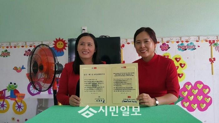 [창원=안기한 기자] 경남 창원시 의창구 가정 어린이집 연합회는 지난 10월 18일 베트남 국립 TRƯỜNG MẪU GIÁO ĐIỆN DƯƠNG유치원과 유아교육 발전에 관한 협약식 체결과 동시에 유치원 내부에서 영.유아에 관하여 1시간여 동안 봉사활동도 함께 전개하면서 유아교육의 미래를 밝게했다.