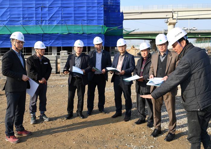 울산시의회 산업건설위원회는 제210회 임시회 기간 중 '덕하공영차고지 조성공사' 현장 등을 방문했다. 사진은 오는 4월께 준공 예정인 덕하공영차고지 조성공사 현장을 방문한 의원들이 공사 현장을 직접 둘러보며 현장 관계자에게 공사개요 및 추진상황에 대해 보고를 받는 모습.