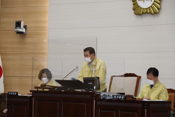김정재 의장은 개회사를 통해 "오늘부터 22일간 개최되는 이번 정례회는 2020년도 결산 및 예비비 지출에 대한 승인요구안, 2021년도 제1회 추경예산 및 각종 조례안에 대해 심사하는 매우 중요한 회기이므로 의원 여러분께서는 작년 한 해 동안 소중한 세금이 낭비 없이 적절하게 집행됐는지, 추경예산이 꼭 필요한 곳에 적정하고 알맞게 편성돼 있는지를 면밀히 검토하고 심사해 주시기 바란다"고 당부했다.