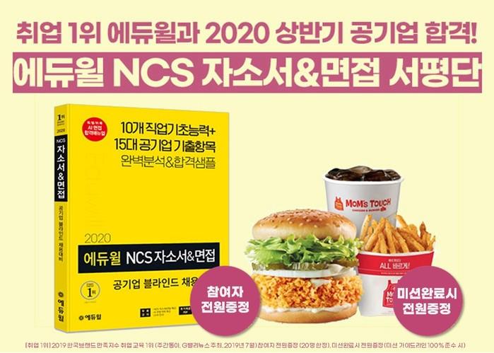 서평단은 에듀윌 NCS 도서로 공기업 취업에 합격하고 싶은 취준생이라면 누구나 신청할 수 있으며, 에듀윌 도서로 직접 학습해보고 생생한 후기를 온라인서점, 블로그, 커뮤니티 등에 작성하는 미션을 수행하게 된다. 서평단 참여자 전원에게는 스터디 도서를, 미션 완료자 전원에게는 맘스터치 싸이버거 세트를 제공한다. 서평단 활동기간은 2월10일부터 23일까지다.